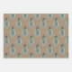 Watercolor-painted blue spruce trees in a repeat pattern on kraft colour paper in threee separate sheets.