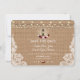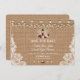 Unique card design featuring string lights, old lantern with marsala flowers bouquet on a burlap with lace corners background. Use Customise tool to add your info. See, also, my Vintage Lace Collection.