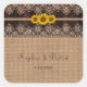 Rustic Lace Burlap Wood Wedding Square Sticker
