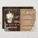 Rustic, unique and elegant design featuring a combination of burlap and old barn as background, watercolour ivory flowers in a vase, gorgeous typography I DO BBQ with a ring replacing letter O, gorgeous lace corners. For more, please, visit my I Do BBQ Chalkboard/Barn and Gingham Collection.