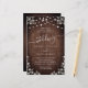This affordable wedding invite features pretty lacy graphics on a rustic dark wood background accented with string lights. Click the customise button for more flexibility in modifying the text. Variations of this design, different paper types, as well as coordinating products are available in our shop, zazzle.com/store/doodlelulu. Contact us if you need this design applied to a specific product to create your own unique matching item! Thank you so much for viewing a DoodleLulu by 2 june bugs design!
