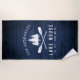 A beautiful, rustic themed beach towel, featuring your family name and "Lake House" or other desired text along with its established date and location. This custom, unique design features a white silhouette of crossed boat oars and pine trees on a print of wood planks in rich blue colours. To see more designs like this, feel free to visit my store here at "Zazzle.com/Rustic_Charm". Thanks.
