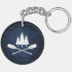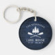 A beautiful, rustic themed 2 sided acrylic keychain, featuring your family name and "Lake House" or other desired text along with its established date and location. This custom, unique design features a white silhouette of crossed boat oars and pine trees on a print of wood planks in rich blue colours. To see more designs like this, feel free to visit my store here at "Zazzle.com/Rustic_Charm". Thanks.
