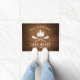 A beautiful, rustic themed doormat, featuring your family name and "Lake House" or other desired text along with its established date and location. This custom, unique design features a white silhouette of crossed boat oars and pine trees on a print of wood planks. To see more designs like this, feel free to visit my store here at "Zazzle.com/Rustic_Charm". Thanks.