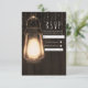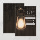 Rustic Lantern & Lights Brown Wood Wedding RSVP Card
