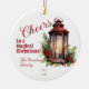 Rustic Lantern Pine and Berries Cheers Christmas Ceramic Ornament