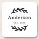 This simply elegant custom monogrammed beverage coaster set features leafy laurel branches that frame a family last name. A beautiful keepsake gift for newlyweds or new homeowners. Black and white design colours can be modified to coordinate with your home decor.