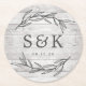 Rustic Laurel Leaf Monogram Wedding Round Paper Coaster