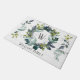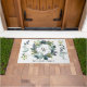 Welcome your guests in style with a personalized rustic theme doormat. The elegant design template This elegant design template features a laurel wreath of hand painted watercolor greenery on a white and gray weathered wood background. In the center of the wreath is your initial to personalize and below a family name.