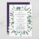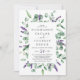This rustic lavender and eucalyptus all in one wedding invitation is perfect for a simple and elegant outdoor wedding. The floral design features watercolor eucalyptus leaves and greenery with sprigs of purple wildflowers. Save paper by including the details on the back of the wedding invitation instead of on a separate enclosure card. Include the RSVP info as well if your guest will be replying electronically (optional).