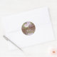 Pretty baby shower favour seal featuring a watercolor purple lavender floral bouquet set on a rustic wood background