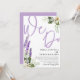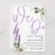 This is a rustic and elegant 'We Do' calligraphy wedding invitation in lovely purple text on a white background, adorned with watercolor lavender and white florals with foliage. Original artwork direct from the studio created with your special day in mind. Easy to customise the text to create something really unique.