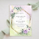 Announce your wedding in style with this Rustic Lavender Purple Boho Chic Geometric Wedding Invitation, featuring two elegant overlapping hexagon frames with a stunning gold foil overlay (digital effect). Adorned with lush eucalyptus, soft wedding greenery, and delicate pampas grass, this design blends modern geometric elegance with a dreamy watercolor wash background. Perfect for a bohemian, rustic, or nature-inspired wedding, this invitation exudes sophistication, romance, and effortless charm. Fully customisable, it’s ideal for couples who love botanical details, gold accents, and a touch of contemporary boho flair.