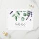 This rustic lavender song request RSVP postcard is perfect for a simple and elegant outdoor wedding. The floral design features watercolor eucalyptus leaves and greenery with sprigs of purple wildflowers. Build your wedding guest list and your dance floor song list all at once! This wedding response postcard conveniently asks guests if they will be able to attend your wedding, and also what song will get them to dance.