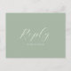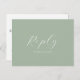 Elegantly crafted to pair with our watercolor lavender wedding stationery, this RSVP postcard is a true embodiment of a botanical romance. It showcases minimalistic sprigs of lavender flowers. This postcard thoughtfully provides a dedicated space for guests to confirm their attendance and add their song request. The word "Reply" is set in elegant script typography over a sage green background. Ideal for rustic and garden weddings, this piece is a testament to the unique artistry of Victoria Grigaliunas from Do Tell A Belle. Discover matching stationery and more at www.zazzle.com/dotellabelle.