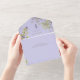 AVAILABLE WITH OR WITHOUT A QR CODE. This design features lavender, pale blue, and white wildflowers with delicate greenery on a lavender background. Add a QR code to your invitation so that gusts can quickly access your wedding Website for details, directions, menu options, and more, or add your gift registry Web URL. Personalised All-In-One invitations are a unique combination of both a beautifully printed custom invitation with an easy to tear off perforated RSVP postcard. And they are so easy to use! You simply fold, then seal the back flap with the three included clear stickers, and mail. And when your guests receive your custom invite, they just tear the perforated RSVP Card off and drop it back in the mail to you!