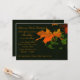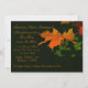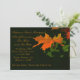A stunning invitation featuring a burnt-orange fall leaf against a dark green background. Perfect for any fall celebration.