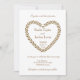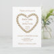 Rustic leaves heart gold white wedding invitation
