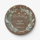 Rustic leaves on wood string lights wedding paper plate