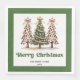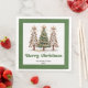Modern Christmas dinner napkins featuring three minimalist watercolor Christmas trees in earthy green and gold with playful leopard pattern accents and hand-drawn lettering. A stylish choice for festive tables, these napkins are personalised with your custom name, adding a unique and elegant touch to your holiday dinner or Christmas party décor. 🎄✨