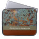 A masculine rocky stone textured 15 inch laptop sleeve with a photograph of an earthy rustic style rock in a rusty red colour and covered in mossy green rock lichen. Personalise this classy mobile device case by adding your name. Original Art copyright of ©Tracie Kaska