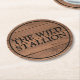 Rustic Light Brown Wood Faux Engraved Name Bar Round Paper Coaster