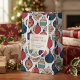 This rustic and elegant Christmas gift bag feature a hand-drawn illustration of vintage Christmas ornaments in black ink against an elegant light grey background. Personalise with your own Holiday Greeting and Family Name.