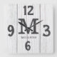 Farmhouse-style wall clocks with a soft rustic twist — this personalised light wood clock is the perfect accent for a cosy country kitchen or cottage-themed living room. Customise with a family name and monogram letter to create a warm and thoughtful gift. Makes a unique housewarming present, rustic anniversary gift, or holiday decor idea.