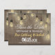 Rustic Country Hanging Lights Burlap Print Wedding Save the Date Postcards for a country style or vintage themed wedding. Add your save the date details to the front and your return address to the back. There is room to address each postcard to your guests.