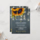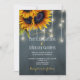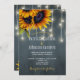 Elegant chic summer or autumn fall wedding stylish invitation template on navy blue chalkboard featuring a beautiful sunflowers bouquet and vertical stings or twinkle lights. Fill in your information in the spots, You can choose to customise it further changing fonts and colours of lettering. --------- The invitation is suitable for elegant summer or autumn fall rustic country | garden backyard weddings. -- If you need assistance in customising it, please contact me!