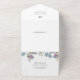 Elegant Rustic Lilac All-In-One Invitation. Simplify your wedding stationery without compromising elegance with this stunning all-in-one send-and-seal invitation. This invitation effortlessly blends romance and sophistication, featuring a breathtaking hand-painted watercolor wreath of lilacs in soft lavender, purple, and blue intertwined with lush greenery. The easy-to-use format includes a tear-off RSVP card for added convenience, while the seamless design ensures a polished and coordinated look. Fully customisable, you can personalise the wording, adjust font styles and sizes, and modify the background to create a perfect match for your wedding theme. Make a lasting first impression with an invitation that combines beauty and practicality.