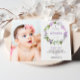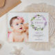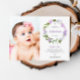 Celebrate the beautiful milestone of your child’s dedication with this personalised Rustic Lilac Flowers Photo Girl Dedication Invitation. This design features a delicate watercolor wreath of lilac and greenery, paired with a customisable section for your child’s photo. Perfect for baby dedications or similar religious ceremonies, this invitation allows you to add your own special touch by including a cherished photo of your child. Personalise the text with your child’s name, event details, and RSVP information for a unique and heartfelt design that will impress your guests.