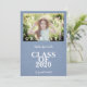 Rustic Linen Effect Elegant Blue Grad Photo Announcement Card.