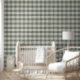 Buffalo Check Plaid in Linen Look is perfect for a forest, lake or mountain retreat cabin or cottage decor, this wallpaper was created by internationally licensed artist and designer, Audrey Jeanne Roberts ©. The crisp, tailored background is a soft tan and dusty greyed blue green. Other background colors are available. This has a 4" HALF DROP REPEAT pattern which can require slightly extra length to your roll for matching the pattern.
