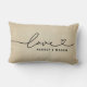 Rustic Linen Love Heart Script Couple Names Lumbar Cushion