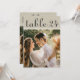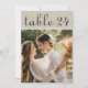 Warm linen texture and handwritten calligraphy bring rustic charm to this wedding photo table number card. The natural, organic feel pairs beautifully with barn, vineyard, and outdoor reception settings. To customise, type in the table number, click Change by the default photo to upload your own, and add that individual table number card to your shopping cart. Repeat for all of the table numbers that you need.