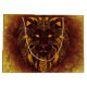 A geometric tribal head of a lion with a rustic brown flair