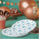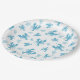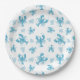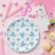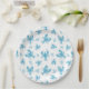 Bold lobster pattern paper plate with coral accents in textured blue on white. Distressed block print aesthetic with a coastal, vintage feel. Ideal for seafood lovers, beach enthusiasts, and nautical style fans.