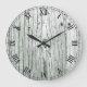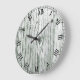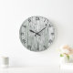 Faded, white-toned boards provide the background for this clock featuring Roman numerals for a classic, vintage look.