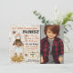 Rustic Lumberjack birthday party invitations with bear paw prints, burly lumberjack on a rustic birch bark background and flannel on the back. Room for your child's photo.