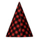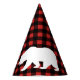 Rustic wilderness buffalo check plaid in red and black with white bear silhouette party hat.