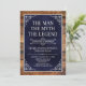 He IS The Man The Myth The LEGEND! His life has been an amazing adventure and it's time to celebrate his legacy and him. This rustic wood backed textured navy blue paper with white type and and white scrolled corners surprise 70th Birthday invitation is perfect for inviting friends and family to join you in honouring and celebrating this incredible milestone birthday! To see your unique invitations click on "Personalise this Template" and type in your information. It's super easy!