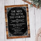 He IS The Man The Myth The LEGEND! His life has been an amazing adventure and it's time to celebrate his legacy and him. This rustic wood backed textured black paper with white type and and white scrolled corners surprise 90th Birthday invitation is perfect for inviting friends and family to join you in honouring and celebrating this incredible milestone birthday! To see your unique invitations click on "Personalise this Template" and type in your information. It's super easy!