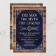He IS The Man The Myth The LEGEND! His life has been an amazing adventure and it's time to celebrate his legacy and him. This rustic wood backed textured navy blue paper with white type and and white scrolled corners surprise 70th Birthday invitation is perfect for inviting friends and family to join you in honouring and celebrating this incredible milestone birthday! To see your unique invitations click on "Personalise this Template" and type in your information. It's super easy!