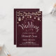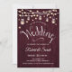 Rustic style design with with maroon burgundy wood, script font. Features Mason jars and fairy string lights. Message me if you need further customization.