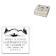This rustic return address is sure to be just what you're looking for. This stamp was designed for that outdoor-loving couple looking for a personal touch to their letter sending. This design features a pine tree and mountain landscape with a peaceful lake and a man canoeing at the top of the stamp with the couples names, last names and return address underneath in rustic modern typography.