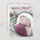 Celebrate your first married Christmas with this rustic watercolor style holiday photo card featuring "Married & Merry" text in plum calligraphy font with line of editable text and place for your keepsake photo framed by a birch twig, holly and pine cone wreath on grey background with optional opaque overlay. Complementary holly pattern on back.