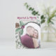 Celebrate your first married Christmas with this rustic watercolor style holiday photo card featuring "Married & Merry" text in plum calligraphy font with line of editable text and place for your keepsake photo framed by a birch twig, holly and pine cone wreath on grey background with optional opaque overlay. Complementary holly pattern on back.