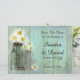 This delicate mint green mason jar and daisy save the date is part of a complete set.