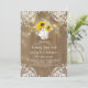 Rustic country engagement party invitation features sunflowers, string lights, mason jar, baby's breath flowers, wood, and lace